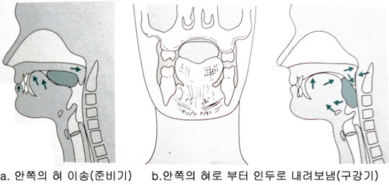 구강과정 : 혀가 음식물을 입 안으로 밀어넣어 연하가 시작되는 과정